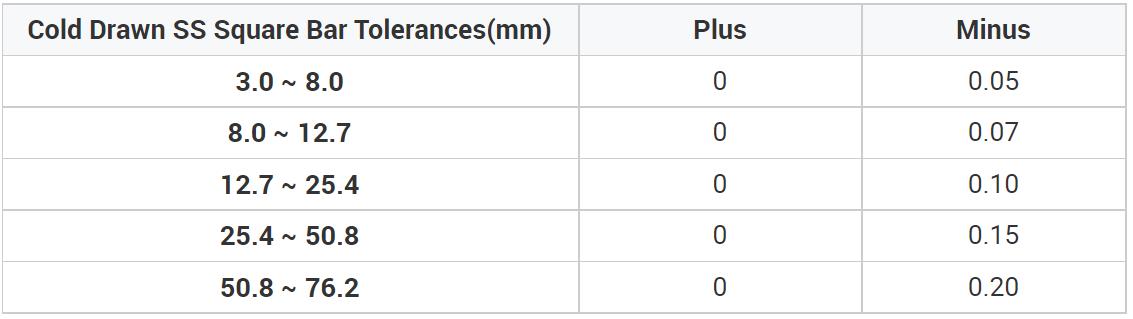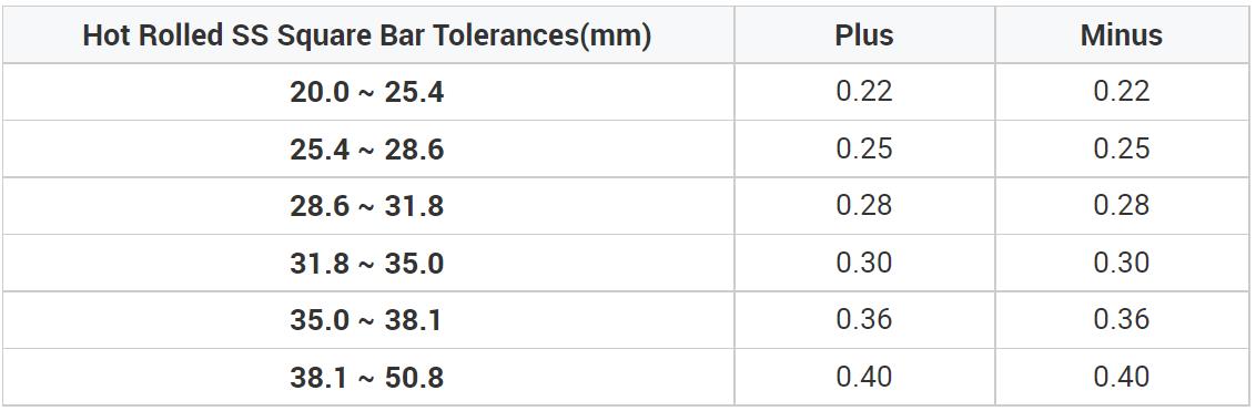 Tolerance for Stainless Steel Hot Rolled Square Bar